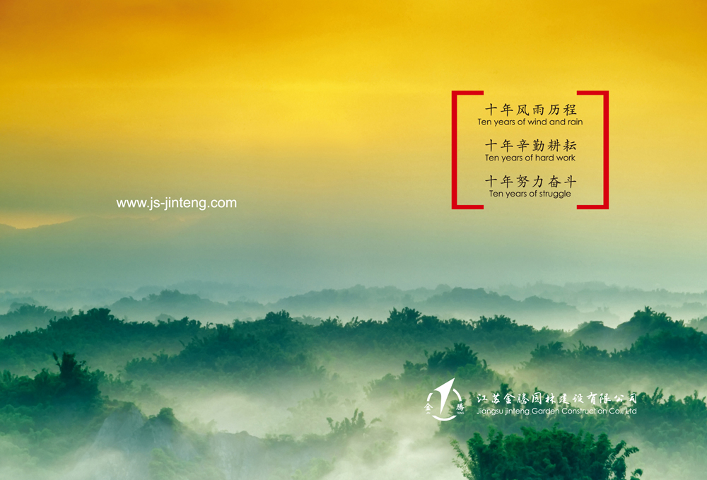 走過十年的風雨歷程,經(jīng)過十年的辛勤耕耘,付出十年的努力奮斗,企業(yè)的規(guī)模不斷擴大,公司堅持以人為本,遵守“誠信、規(guī)范、團結(jié)、奮斗”的宗旨。公司將用優(yōu)秀的品質(zhì)服務(wù)來回報關(guān)愛公司成長的社會各界人士。江蘇金騰園林建設(shè)有限公司愿攜手社會各界有識之士共創(chuàng)造美好的未來!