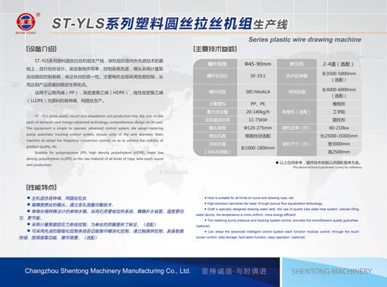 常州神通機械制造有限公司位于滆湖之盼,依托常州市武進區(qū)優(yōu)越的地理環(huán)境,公司創(chuàng)建于1992年,是專業(yè)生產(chǎn)塑料機械拉絲機成套設備的企業(yè)。 神通公司經(jīng)過30年多來的艱辛創(chuàng)業(yè),在塑料機械行業(yè)中積累了豐富的經(jīng)驗,為擴大生產(chǎn)能力,提升產(chǎn)品質(zhì)量,新組建了一個技術緊密合作型企業(yè),并具有獨立法人資質(zhì),即為宜興順通機械制造有限公司。我們會一如既往地努力,堅持走“順通”的品牌之路,愿與各位同行攜手共創(chuàng)未來,為塑料機械行業(yè)的發(fā)展作出貢獻。 神通公司擁有標準廠房共計15000m²,現(xiàn)有先進的三軸、四軸聯(lián)動的加工中心,數(shù)控鉆床、銑床、車床、外圓磨床、剪板機、折彎機等高精度加工設備。 神通公司以精湛的生產(chǎn)工藝、完善的管理體系和滿意的售后服務,得到新老用戶的信賴。設備外形美觀、結構合理、性能安全可靠、具有先進的控制系統(tǒng)等優(yōu)點,物美價優(yōu),得到新老用戶的一致好評。 神通公司對產(chǎn)品質(zhì)量要求是:從原材料采購到成品出廠,均執(zhí)行品質(zhì)控制。 神通公司堅持“以人為本、誠信經(jīng)營、科技興業(yè)、精益求精、以質(zhì)取勝、合作共贏”的經(jīng)營理念。“以質(zhì)量求生存,以創(chuàng)新求發(fā)展”的企業(yè)精神。 主營業(yè)務: 1.雙色人造草坪單絲、雙色人造草坪曲絲一步法、人造草坪開網(wǎng)絲拉絲成套生產(chǎn)線設備系列,及草坪絲一步法捆綁收卷機、一步法捻線機、絡筒機。 2.PE、 PP、 PA、PET圓絲、工業(yè)單絲等拉絲成套生產(chǎn)線設備系列。 3.集裝袋、編織袋、土工布、PP基布、遮陽網(wǎng)、捆草網(wǎng)、蓋土網(wǎng)等平膜扁絲拉絲機成套生產(chǎn)線設備系列。 4.電纜填充網(wǎng)狀絲、PP縱向拉伸膜、PE壓花膜成套生產(chǎn)線設備系列,及各種特殊規(guī)格的電纜填充繩收卷機等電纜材料輔助設備5.高低壓PP,PE吹膜機及撕裂膜、捆扎帶生產(chǎn)線設備系列。 6.塑料回收造粒機組、邊絲回收裝置及粉碎機等。 7.圈、扁絲磁性收卷機、變頻無刷電機收卷機,圓絲工字盤、橄欖形、寶塔形收卷機及浸膠線專用收卷機。 8.舊塑料拉絲機設備改造、可定做特殊規(guī)格的圓、扁絲帶捻度專用收卷機、繩網(wǎng)絡筒機及其它收卷機。